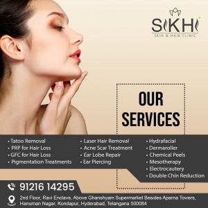 SIKHI SKIN & HAIR in Kondapur is an exclusive Skin and Hair Clinic, that caters to needs related to Aesthetic and Cosmetic Skin and Hair issues, Non surgical Cosmetic Treatments, LASER treatments, Dermatosurgery and Dermatology.