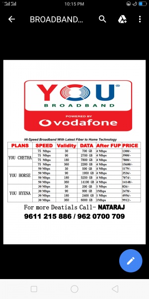We have starting from including30 Mbps 200 GB @826/-50 Mbps 500 GB @1179/-75 Mbps 700 GB @1300/-1000 Mbps 1000 GB @1784/- At 3 months above plan we have offer 3+1 one months free offer More details Call nataraj .. 9611215886 / 9620700709